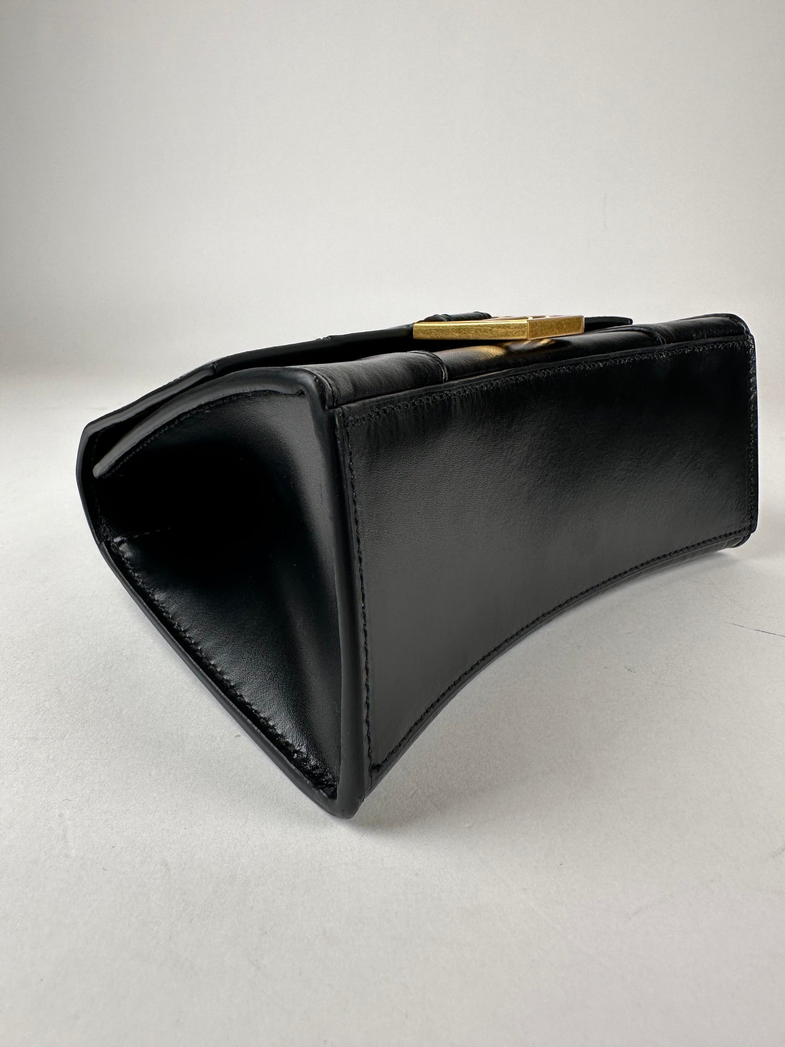 Balenciaga Shiny Calfskin XS Hourglass Top Handle Black